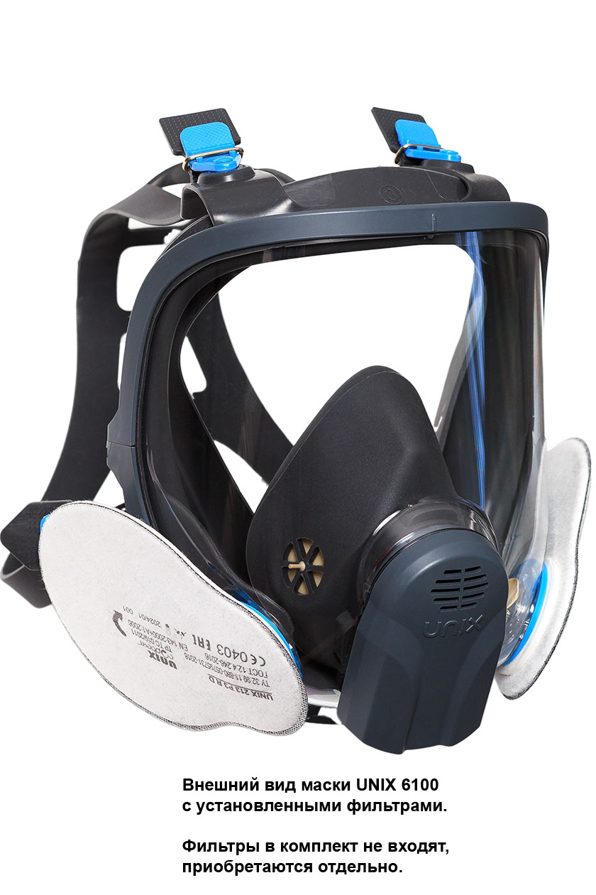 Продажа и поставка оптом полнолицевой маски UNIX 6100 с панорамным стеклом корпусом. Лицевая часть оборудована двумя штыковыми креплениями байонет для быстрого соединения и отстыковки очищающих фильтров. С установленными фильтрами обеспечивает защиту органов дыхания, лица и глаз от воздействия паро- и газообразных вредных веществ.